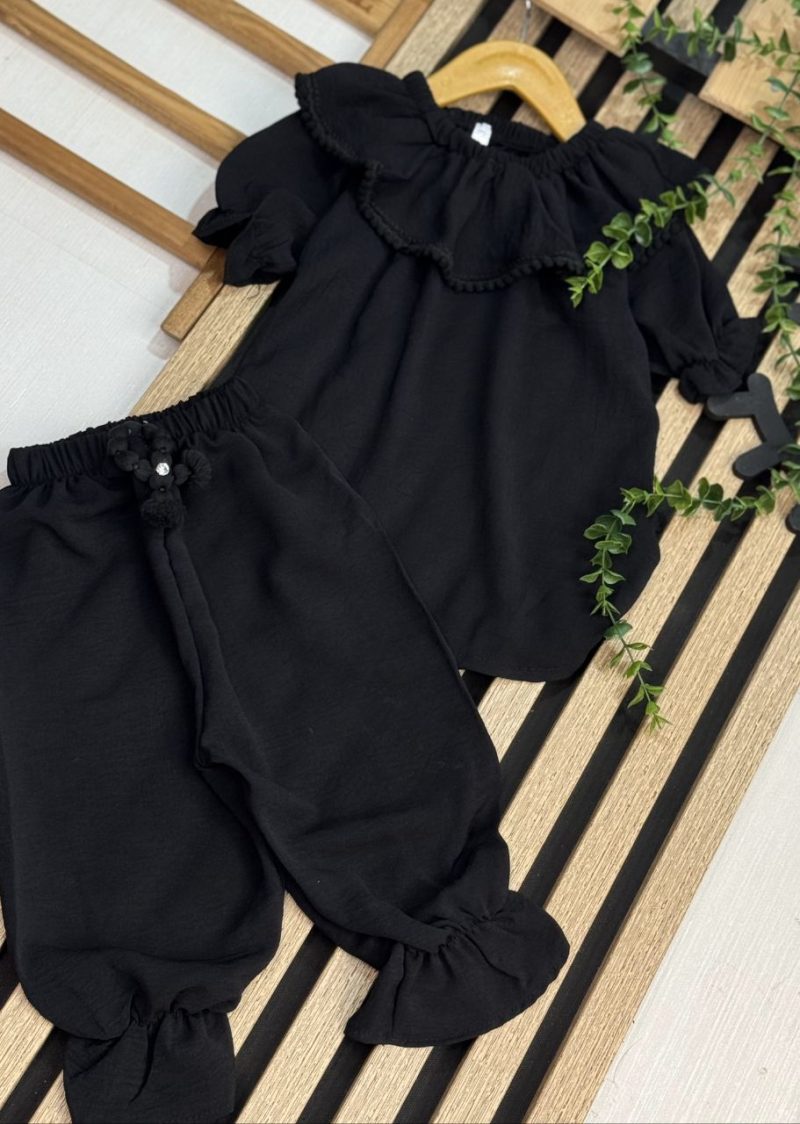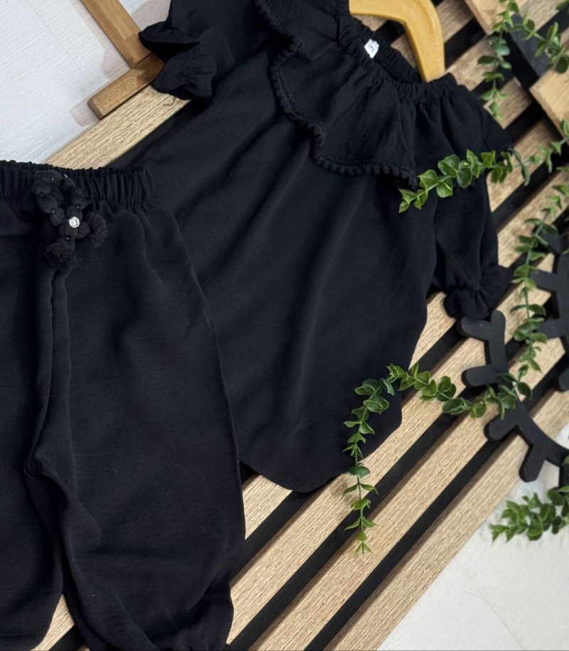 خانهدخترانه شومیز شلوارک ابر و بادی مشکی کد 3178